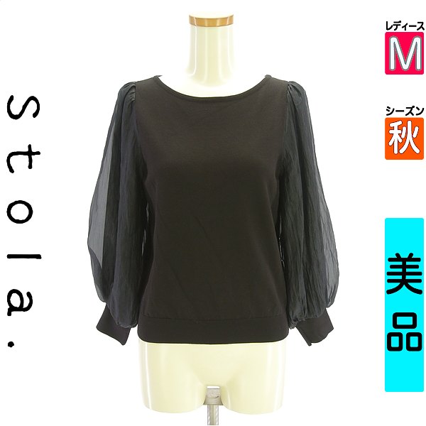 \14周年祭★全品15%OFFクーポン/ ストラ Stola. ニット レディース 秋 長袖 ブラック M ボリュームオーガンジー袖ニット 【中古】【古着】【大幅値下】