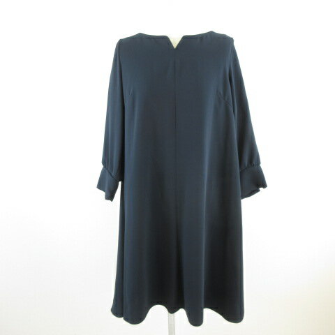 【中古】ストラ Stola. ワンピース フレア ひざ丈 ラウンドネック ウエストベルト 無地 フレンチスリーブ 40 紺 ネイビー レディース 【ベクトル 古着】 250430