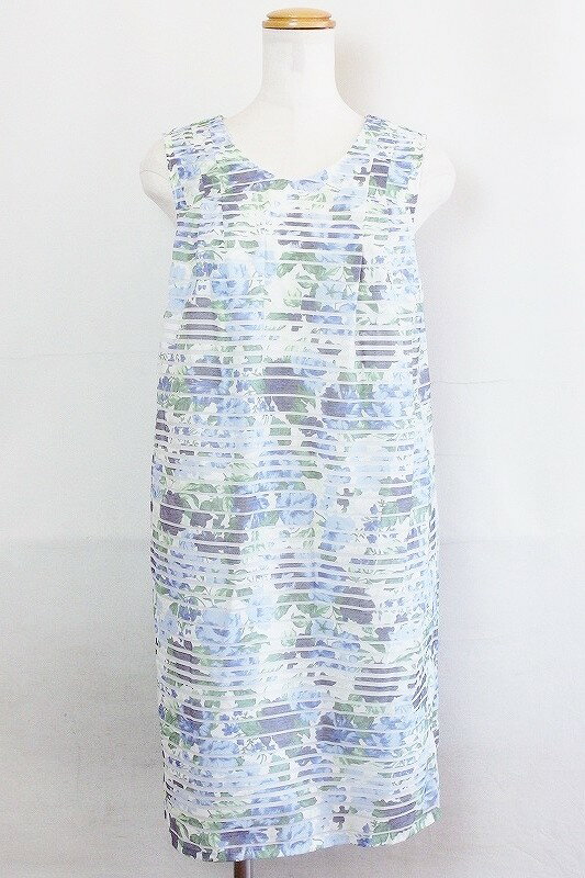 【中古】Stola. ストラ 花柄×ボーダー ノースリーブワンピース 38 ブルー系 ok4414194263