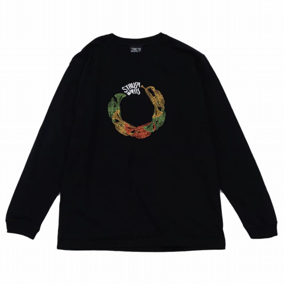 【 STRUSH / TRUMPET LONG SLEEVE TEE / BLACK 】 ストラッシュ 長袖 Tシャツ ロンT スケボー スケートボード ブラック 黒 送料無料