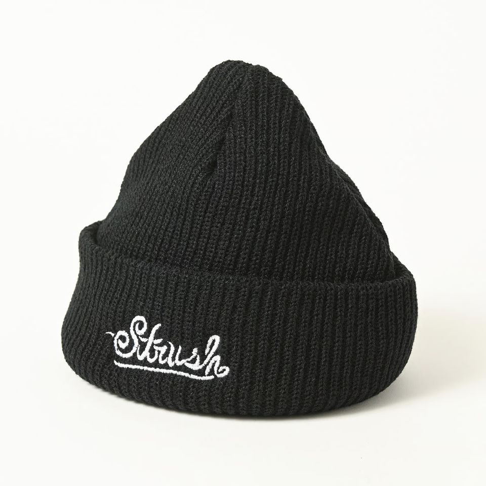 【 STRUSH / SIGNATURE EMB BEANIE / BLACK 】 ストラッシュ ニット キャップ ニット帽 ビーニー ワッチ スケボー スケートボード ブラック 黒