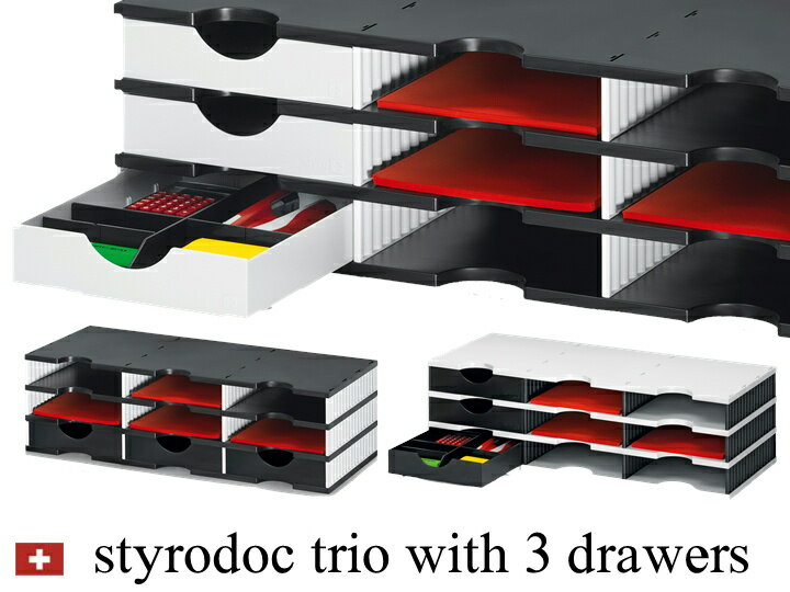 【ポイント10倍中】styroスティーロ styrodoc trio set スティーロドッグ トリオ セット (引出し3ケ付)【全3種】おしゃれ ヨーロッパ 事務用品 オフィス家具 書類整理 書類棚 レターケース レタートレー レタートレイ 引出し