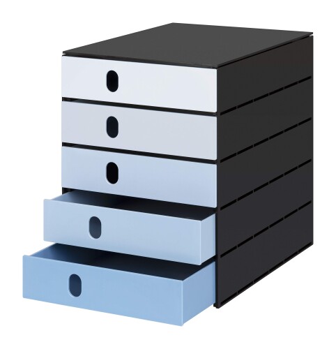 styro バル プロ レターケース 5段 A4対応 ブルー スイス製 書類トレー 分類ラベル付き