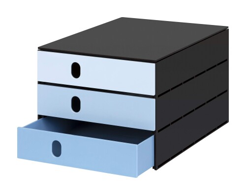 styro バル プロ レターケース 3段 A4対応 ブルー スイス製 書類トレー 分類ラベル付き