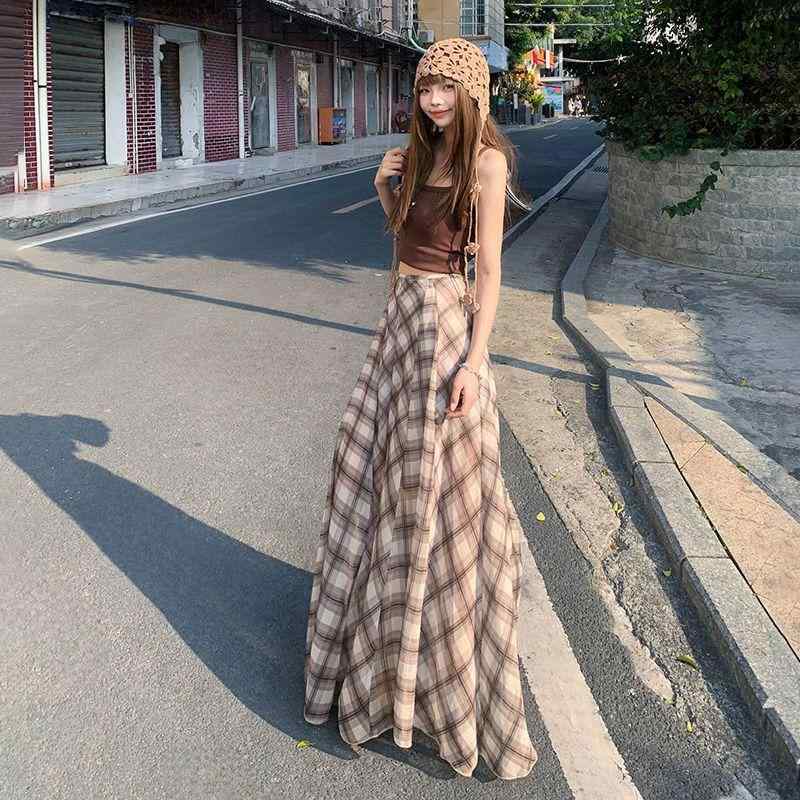 ・主な素材: ポリエステル(ポリエステル繊維)・スカート型: 不規則・スカート丈: ミモレ丈・カラー: ブラウン系チェック・サイズ: XS、S、M、L、XL・スタイル: 韓国風カジュアル・主な素材の含有量: 80-90%・スカート種類: スカート