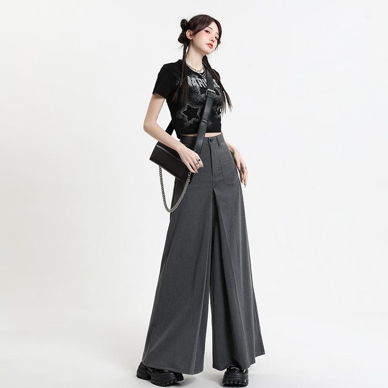 ・素材: ポリエステル、粘纤・パンツ丈: 長ズボン・スタイル: 欧美風、ストリート・パンツ型: ワイドレッグ・ウエスト: ハイウエスト・厚さ: 薄手・特徴: ポケット・カラー: グレー、ブラック・サイズ: XS、S、M、L、XL・対象: 女性・カテゴリ: カジュアルパンツ・生地: ポリエステル70-80%、粘纤30%以下・伸縮性: なし・工艺: 高温定型