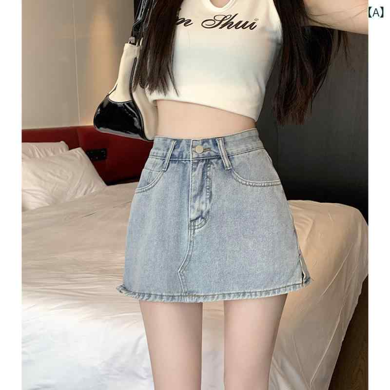 スカート レディース デニムスカート ミニスカート Aライン ハイウエスト ブルー系 XS S M L 7号 9号 11号 小柄な女性向け カジュアル かわいい