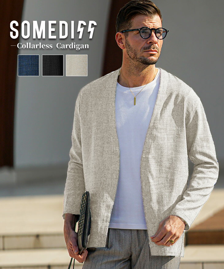 ノーカラージャケット メンズ カーディガン メンズ ボタンレス リネンライク スーツ カーディガン メンズ ジャケット ブラック ベージュ ネイビー ロング 大きいサイズ 薄手 ブランド 春 春服 春物 春夏 メンズファッション リゾート お兄系 オラオラ系 ちょいワル