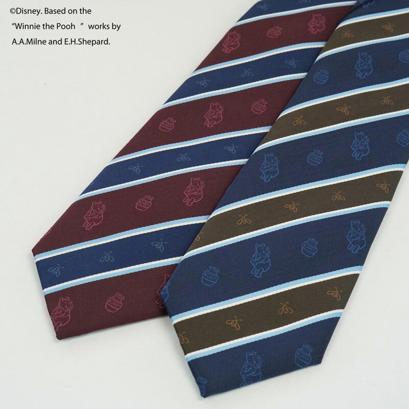 ネクタイ DISNEY ディズニー プーさん ストライプ柄 ネイビー、 レッド ブランド キャラクター誕生日 お祝い 結婚式 クリスマス 入学 入社 就職 プレゼント ギフトおしゃれ かわいい スーツ ビジネス 転職 新生活 新入社員