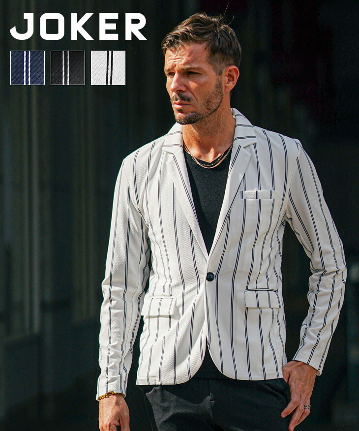 テーラードジャケット メンズ 春 長袖 ジャケット フォーマル テーラード ストレッチ ウォッシャブル 洗える スーツ スリム 細身 ストライプ ビジネス セットアップ対応 春 春服 春物 春夏 メンズファッション ちょいワル オラオラ系 joker ジョーカー