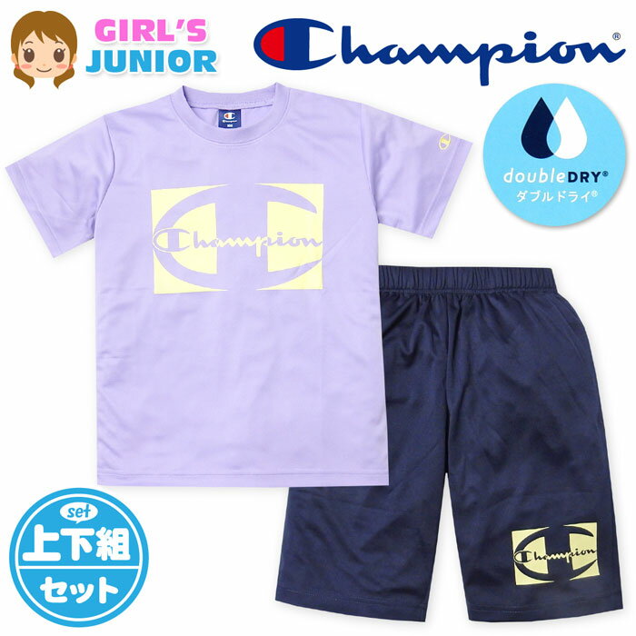 【送料無料】女児 ジュニア 吸汗速乾 半袖 Tシャツスーツ 上下組 Champion/チャンピオン ハーフパンツ ジャージ ダブルドライ 裏メッシュ 子供服 女の子 140cm 150cm 160cm td-0663b-pp【メール便対応】