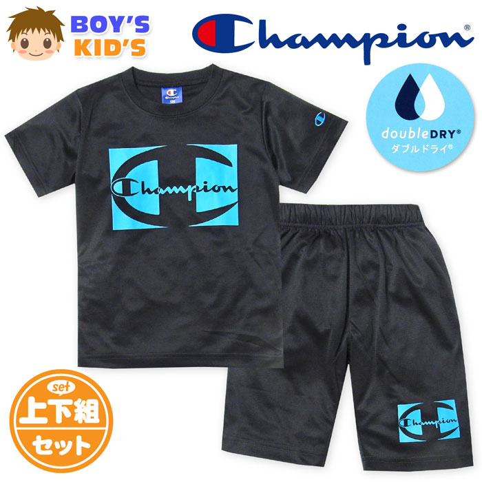【送料無料】男児 キッズ 吸汗速乾 半袖 Tシャツスーツ 上下組 Champion/チャンピオン ハーフパンツ ジャージ ダブルドライ 裏メッシュ 子供服 男の子 120cm 130cm td-0663e-bk【メール便対応】