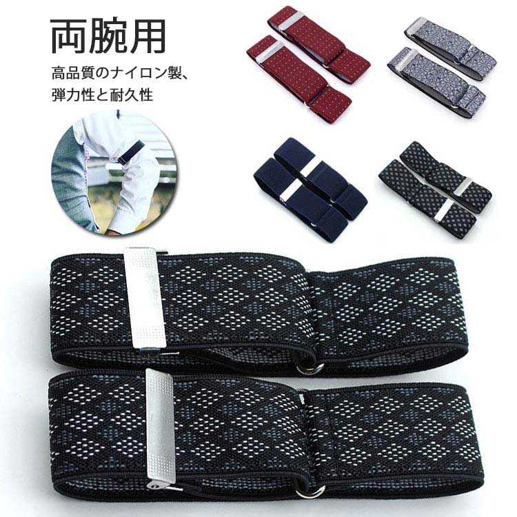 ワイシャツ アームバンド メンズ 腕輪式 両腕用 フォーマル カジュアル スーツ 袖丈 調整 アームクリップ 袖丈をしっかり調整できる ストレッチ ワイシャツ Yシャツ カッターシャツ シャツサスペンダー ドット 花柄 無地 チェック柄 ストラップ柄 送料無料