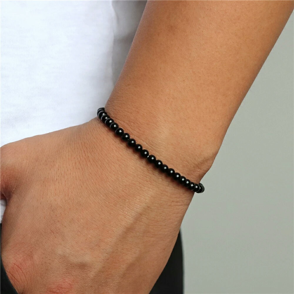 [天然石 数珠 ブレスレット 4mm〜5mm] オブシディアンストーンビーズブレスレット 1個販売 黒色 マッド ブラック 艶なし 石 バングル 腕輪 メンズ レディース 手首 フリーサイズ 腕輪 ゴム プレゼント ギフト 綺麗 職場 男性 女性 大人 彼氏 彼女 男 女 スーツ 人気 伸縮