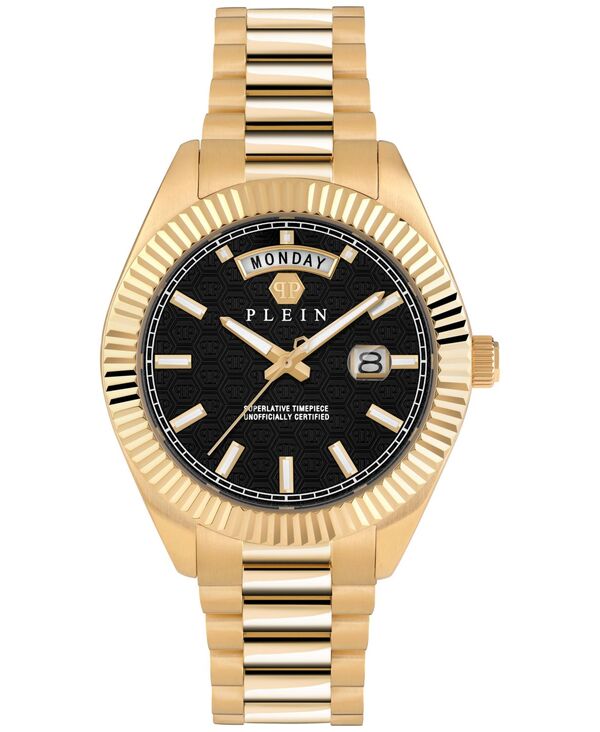 フィリッププレイン メンズ アクセサリー 腕時計 Tシャツ Philipp Plein Men's Date Superlative Gold Ion Plated Stainless Steel Bracelet Watch 42mm Gold ゴールド