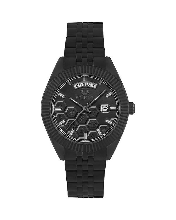 フィリッププレイン メンズ 腕時計 アクセサリー Men's Date Superlative Black Ion Plated Stainless Steel Bracelet Watch 42mm Black
