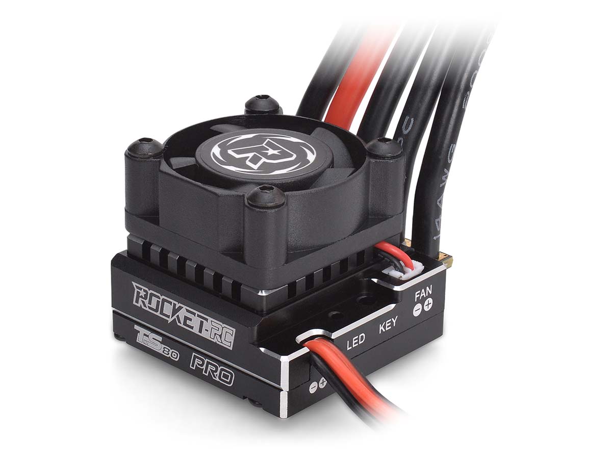 商品番号:22748 最小クラスのブースト・ターボ機能搭載ESC 超コンパクトサイズに圧倒的な競争力をビルトイン 製品特徴 ●29.5×29.5mm、高さ13mm(FAN除く)の超コンパクトサイズ ●電子進角(ブースト/ターボ)機能搭載 ●メカスペースのタイトなシャーシやスモールスケールRCにも最適 ●放熱性と筐体剛性に優れた削出しフルアルミケース ●高効率14AWGケーブルと大容量キャパシター接続済み ●別売りのPROGRAM CARD(SPH804)で各種セッティング変更可能 驚きのサイズ。驚きのパワー。 あらゆるシャーシへの搭載を容易にする、コンパクトなフルアルミ筐体にクーリングファンを装備。14AWGの高効率ケーブルも接続済。 見た目からは想像できない強烈なパワー。 特異なほどのコンパクトサイズが際立つTS80ESC。そのサイズからは想像もつかないほど、パワフルでジャンルを選ばない走りが可能。 LED PROGRAM CARDでカンタンセッティング。 多彩な項目をシンプルな操作でスピーディに設定可能。項目や設定範囲はラベルに記載。その場で確認しながらの設定が可能です。 ROCKET RCとは? Surpass Hobbyのラインナップの中でも特に高性能に特化した製品に付されるROCKET RC。G-FORCEが厳選したモデルを皆様へ。 製品仕様 ●入力電圧:6V-11V ●連続最大電流 / 瞬間最大電流:80A/160A ●モーターリミット:13.5T以上(540), 10.5T(380/390) ●モータータイプ:センサー付380/390/540ブラシレスモーター ●BEC:3A/6V ●システム:8bit プロセッサ、各種保護機能 ●サイズ:29.5×29.5×24mm (LxWxH)(ファンを含む) ●重量:61.4g (ワイヤー含む) ●スロットル方向:「前進/ブレーキ」「前進/後進」「前進/ブレーキ/後進」 出荷時: 前進/ブレーキ 内容物 ●ESC本体 ●クーリングファン(取付済) ●日本語取扱説明書