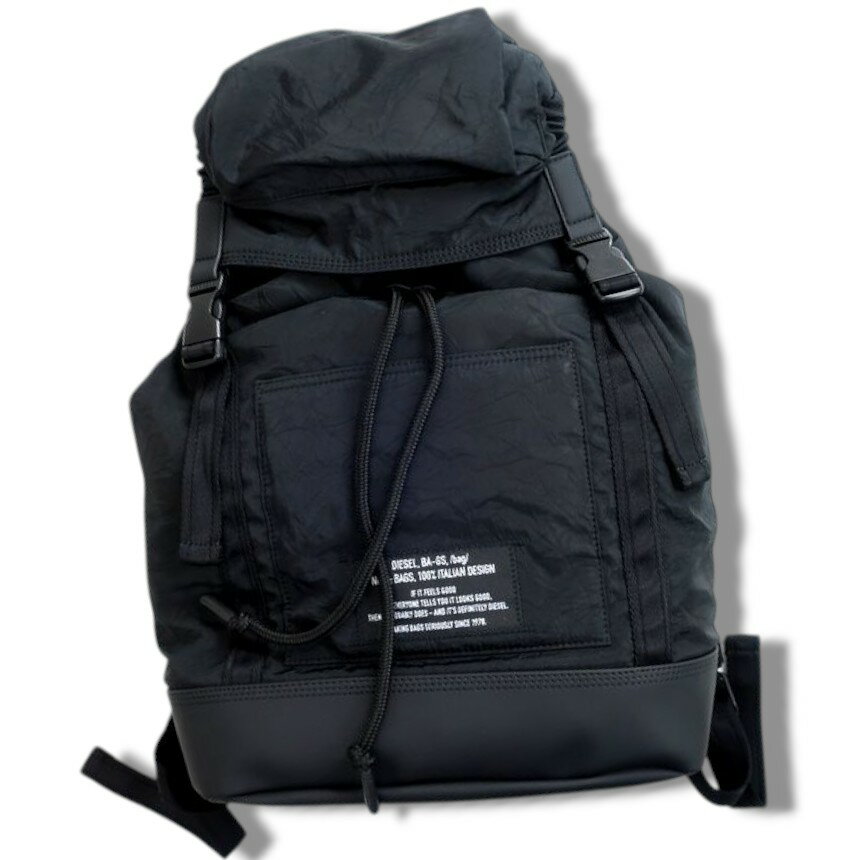 【中古】【新古品・未使用品】DIESEL ディーゼル F-SUSE BACKPACK クリンクル素材 ラップトップスリーブ バックパック リュックサック デイパック X06625 定2.6万 ブラック▲090▼20527k15