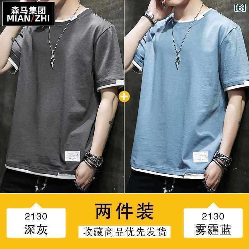 メンズ おしゃれ スウェット セット Semir 綿 半袖 Tシャツ メンズ 夏 薄手 通気性 カジュアル フェイク ツーピース トップス おしゃれ 五分袖