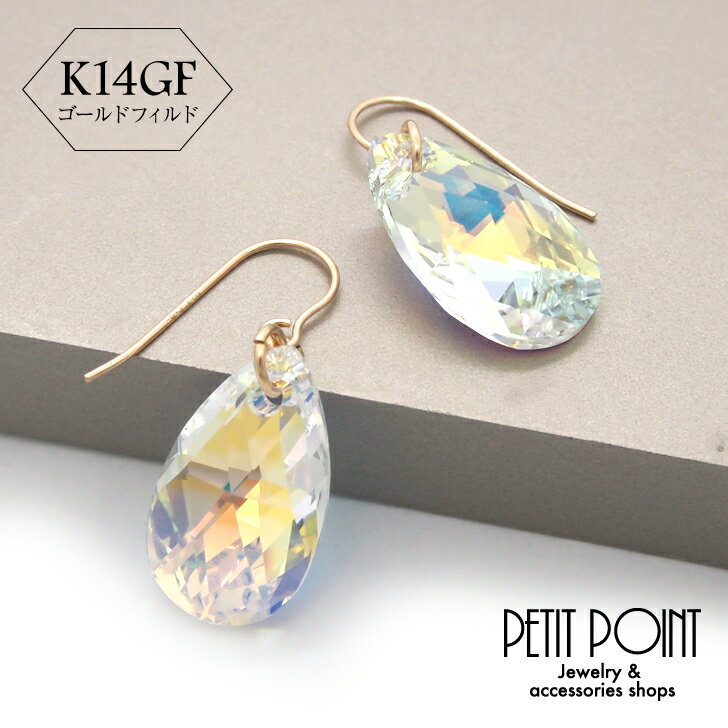 K14GF/大きめクリスタルフックピアス キラキラ ★選べるピアス金具各種(K18・K14GF)イヤリング金具(ステンレス)ゴールドフィルド (1個=1ペア)【PE-K14GF-swaro6000】