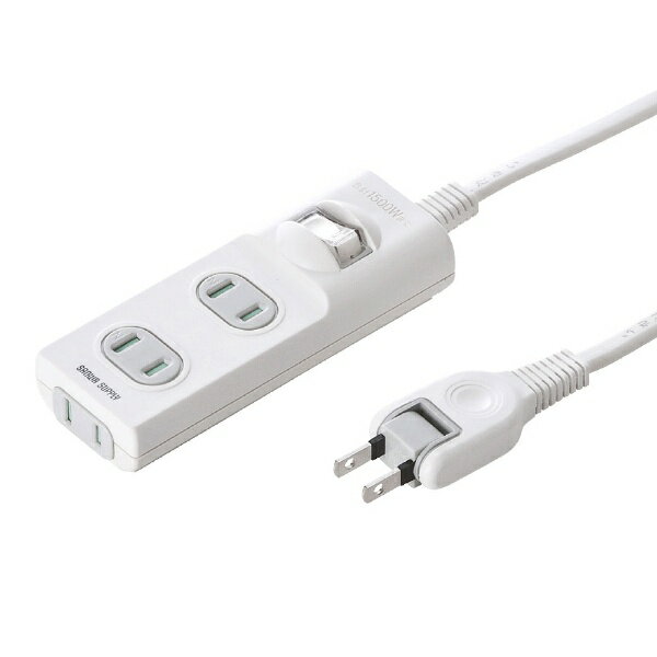 電源タップ 3個口 2m ほこり防止 一括スイッチ 折りたたみ式プラグ 絶縁キャップ付き 2ピン ネームタグ付き ホワイト TAP-TSH32SWN