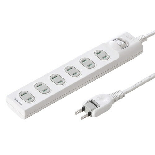 【返品種別A】□「返品種別」について詳しくはこちら□2016年01月 発売◆差込口はホコリの侵入を防止するシャッターが付いて安全です。子供のいたずら予防にもなります。◆恐ろしいコンセント火災を予防する絶縁キャップ付きスイングプラグを採用しました。◆集中スイッチ付きなので、一括電源ON・OFFができて便利です。またランプ付きスイッチなので電源の切り忘れ防止にもなります。◆安全性、信頼性を向上させた保護被ふくコードを使用しています。◆接続した機器を記入できるネームタグ付きです。■ 仕 様 ■定格容量:15A・125V(合計1500Wまで)プラグ仕様:2P・スイングプラグ(絶縁キャップ付き)差込口:2P・6個口電源コード長:1m本体サイズ:幅224×奥行44×高さ31.4mm(スイッチガードを含む)付属品:ネームタグ×6[TAPTSH61SWN]サンワサプライ生活家電>電源コード・タップ>6個口以上>コード長 1.0〜1.9m>スイッチ付き