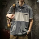 メンズ ファッショオン オシャレ カジュアル 男性 カラー ブロック ポロシャツ 半袖 Tシャツ 夏たり 大きいサイズ アメリカン レトロ ストライプ ワッペン 五分袖