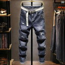 メンズ 男性用 ファッション オシャレ シンプル 大人 かっこいい ストリート ヒップホップ HipHop ハイ ストリート ジーンズ パッチ スクラッチ ウォッシュ 夏 薄手 ストレッチ スリム パイント
