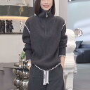 秋服 レディース ファッション オシャレ カワイイ シンプル 大人カワイイ 大きいサイズ ハーフ ジップ セーター 秋冬 厚手 プルオーバー ハイネック ボトニング シャツ トップス