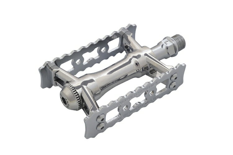 40年後の革新/次世代ハイエンドフラットペダル●1979年発売以降、いまも絶大な人気を誇るSYLVAN TOURINGは「次」のステージへ。 ●従来のカップ&コーンからメンテナンスフリーで回転性能のよいトリプルシールドベアリングを採用。驚異のなめらかさを誇ります。 ●左右幅広な踏み面となめらかで回転抵抗の少ないベアリングは、疲労を軽減しペダリング効率を高め、特に長距離ツーリングに最適。またクオリティを求めるこだわりのアーバンバイクにもおすすめ。 ●鏡面仕上げのボディとクロムメッキプレートは品位と高級感をもたらす。 ●SYLVAN TOURINGと比べ、重量が50g以上軽く、スタックハイトも薄いためより効率的に力を伝える。 ●従来の側板形状・デザインを踏襲し、変わらぬ踏み心地と洗練されたフォルムを継承。 ●ネジ止め側板により、万が一の破損時でも交換が可能。 ●もちろんトゥクリップ&ストラップ取付可能。※ベアリングはメンテナンスフリーとなります。分解はしないでください。キャップはベアリング調整も担っておりますので、開封すると調整が変わる可能性がございます。ご注意ください。※MKSオリジナルの簡単脱着機構EzySuperiorシステムにより工具なしで簡単容易に脱着が可能。折りたたみ自転車や輪行に最適です。Pat・ボディ: アルミ ・側板: アルミ/クロムメッキ ・サイズ: W94 x L63 ・踏み面:両面 ・ベアリング:トリプルシールドベアリング ・トウクリップ装着:可 ・リフレクター:取付可 ・おすすめ用途:ツーリング輪行街乗り ・重量:390g ・付記:※サイズ表記:W=踏み面横幅、L=踏み面前後幅****************▼ ▼ ▼ ▼ ▼ ▼ ▼ ▼ 即日お届け商品はこちら♪▲ ▲ ▲ ▲ ▲ ▲ ▲ ▲****************