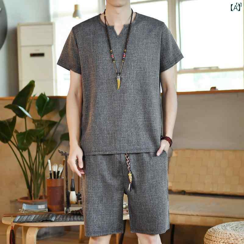 メンズ ファッショオン オシャレ カジュアル 男性 リネン 半袖 Tシャツ 夏 薄手 通気性 冷感 スーツ 中華風 大きいサイズ コットン