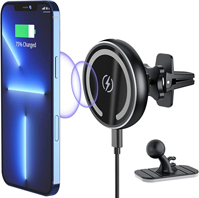 車載ホルダー スマホホルダー 安定感 スマホスタンド 車 mag-safe対応 マグネット 車載ワイヤレス充電器 iphone12/iphone13/iphone14シリーズ専用 7.5W/10W/15W ダッシュボード/エアコン吹出口に取付可能 車載充電器