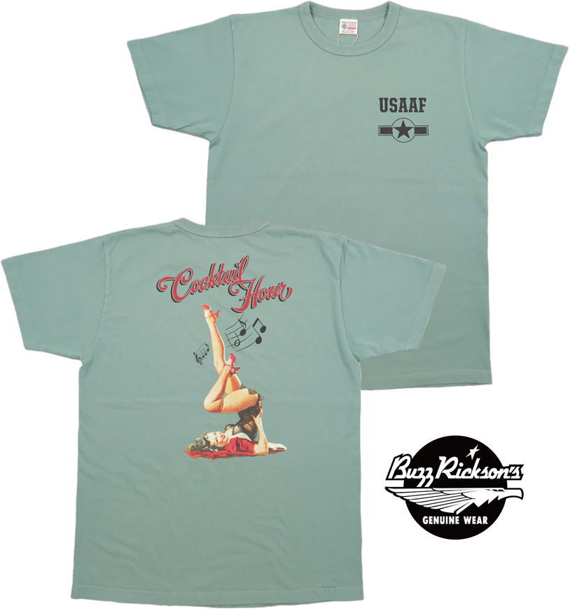 BUZZ RICKSON'S/バズリクソンズ S/S T-SHIRT GIL ELVGREN PIN-UP “COCKTAIL HOUR” ジル・エルブグレンのピンナップガール 半袖バックプリントTシャツ/プリントTEE SAGE(セージグリーン)/Lot No. BR78911