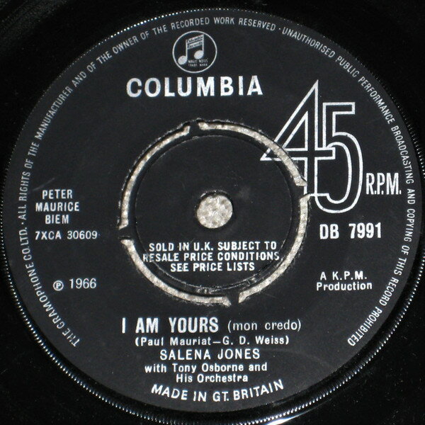【中古】英7” Salena Jones, Tony Osborne & H I Am Yours (Mon Credo) / I Only Know I Love You DB7991 Columbia /00080