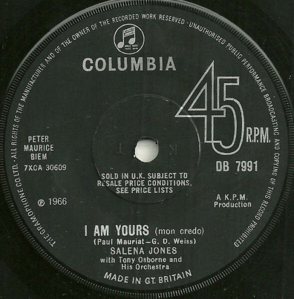 【中古】英7” Salena Jones With Tony Osborne I Am Yours (Mon Credo) / I Only Know I Love You DB7991 Columbia /00080