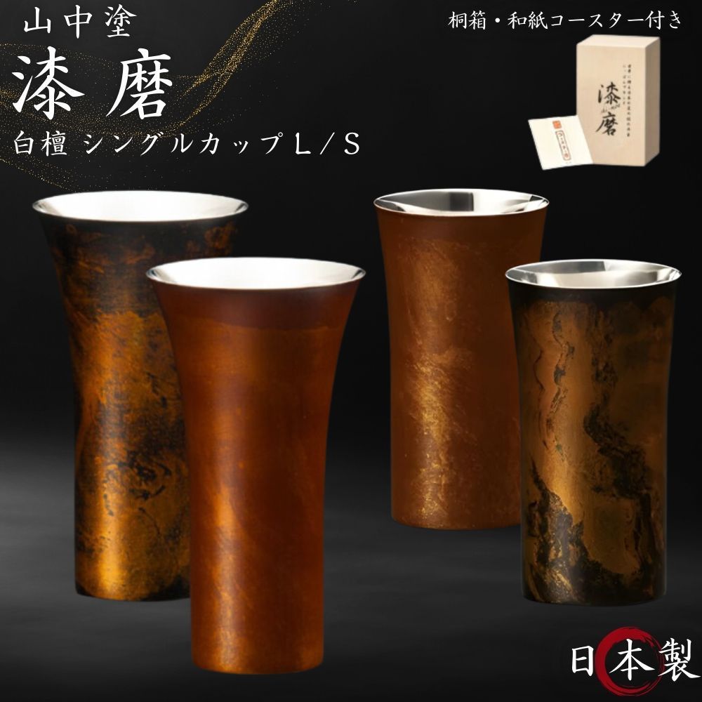 [最大P47倍お買物マラソン対象] 漆磨 シングルカップ S / L 白檀 赤 黒 240ml 380ml 単品 日本製 国産 和紙コースター付き ビアカップ 酒 保温 保冷 山中漆器 ステンレス 木箱 人気 おしゃれ 高級 プレゼント SCS-S501 SCS-S502 SCS-L501 SCS-L502 ウチキ