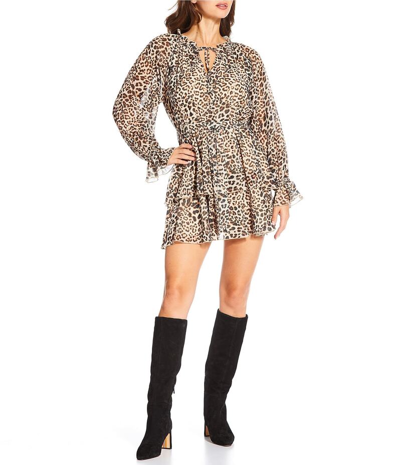 ルーシーパリ レディース トップス ワンピース Vネック ミニワンピース プリント ミニ Lucy Paris Santino Leopard Print V-Neck Long Sleeve Mini Dress Leopard アニマル