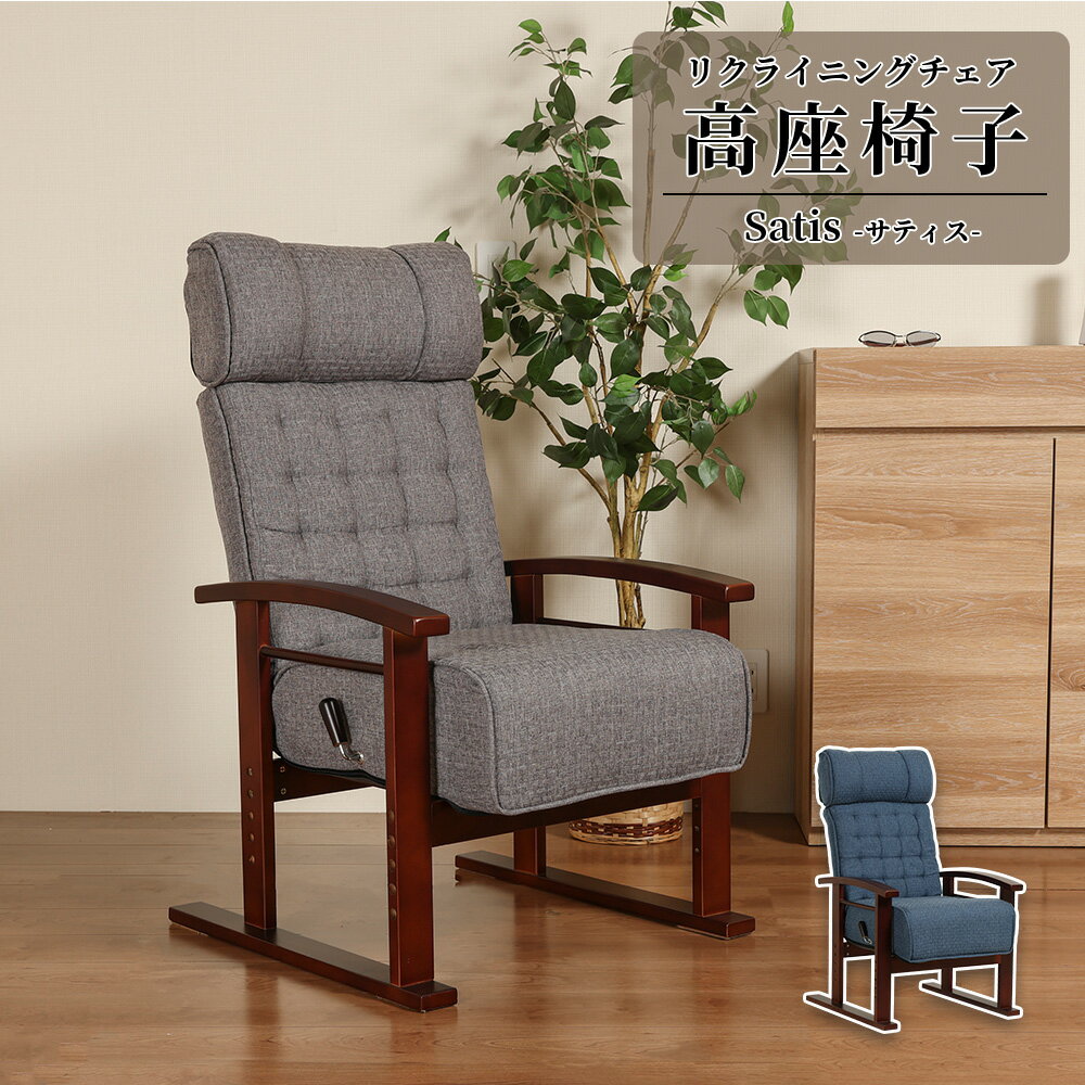 高座椅子 リクライニング パーソナルチェア 高齢者 シニア イス 高さ調整 ハイバック 天然木 ファブリック 敬老 敬老の日 プレゼント 高さ調整 satis/サティス