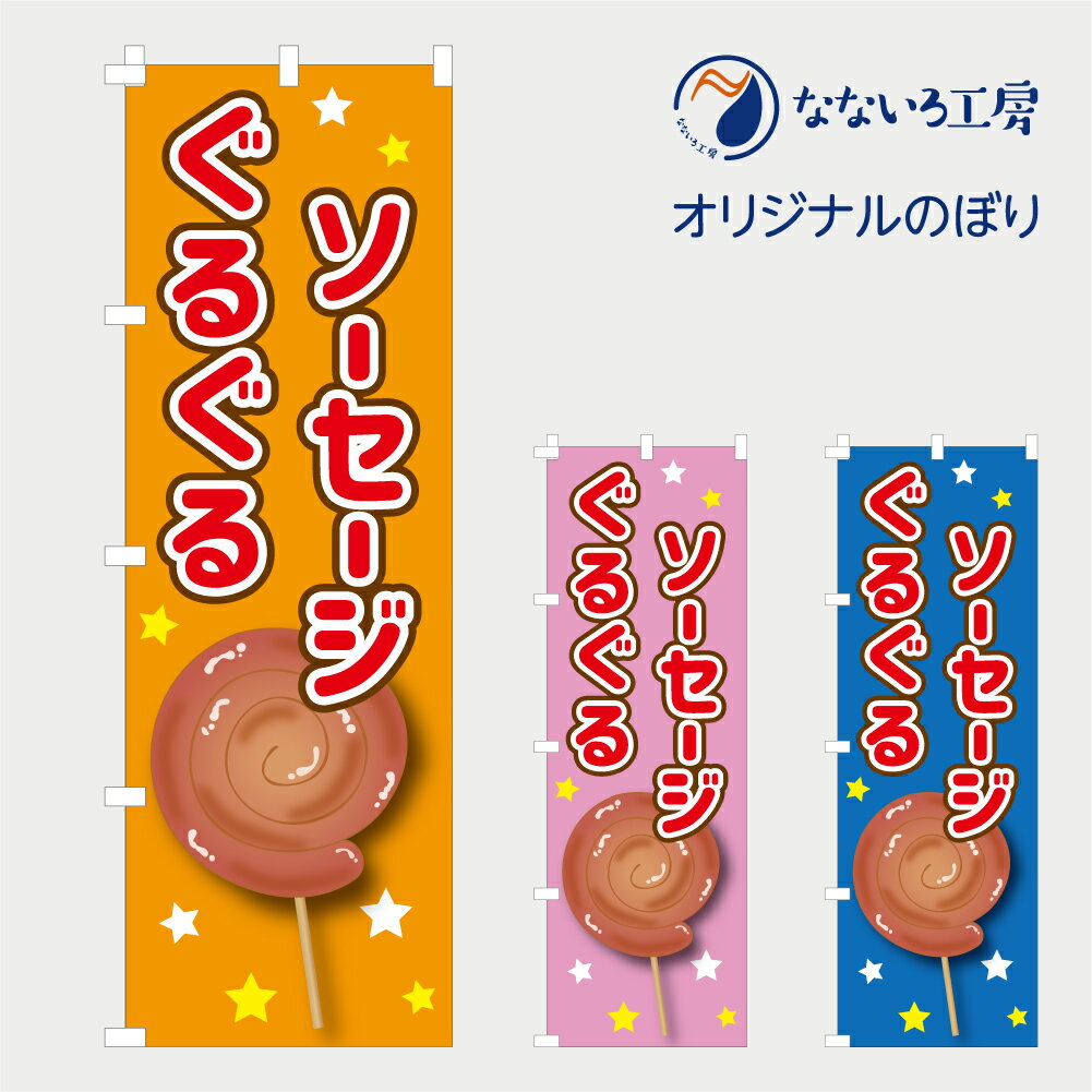 [食べ物ではありません]のぼり 旗 ぐるぐるソーセージ SAUSAGE ジューシー お祭り 縁日 屋台 イベント イラスト 目立つ 可愛い 美味しい 600*1800