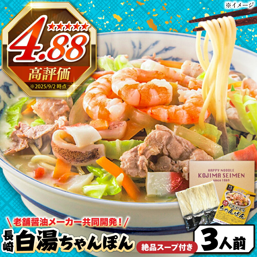 【ふるさと納税】【本場仕込みの極上スープ】長崎白湯ちゃんぽん 3食 / ちゃんぽん チャンポン 長崎ちゃんぽん 麺 お試し 2000 2000円 2千円 / 南島原市 / こじま製麺[SAZ025]
