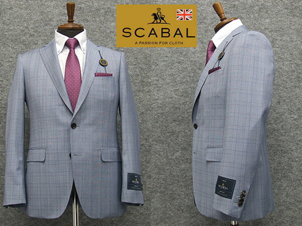 【SCABAL スキャバル】【秋冬春】グレー系グレンチェック/濃グレー無地 スタイリッシュタイプ【YA体】【A体】【AB体】【日本製】2ボタンシングルスーツロゴ入り裏地【送料無料】
