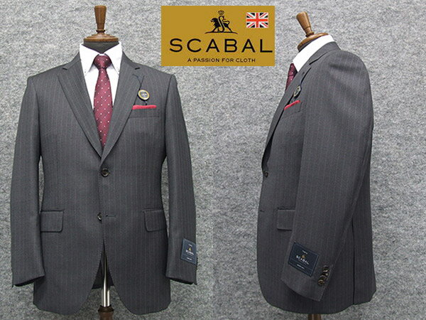 【SCABAL スキャバル】【秋冬】グレーストライプ/紺ストライプ スタイリッシュタイプ【YA体】【A体】【AB体】【日本製】2ボタンシングルスーツロゴ入り裏地【送料無料】