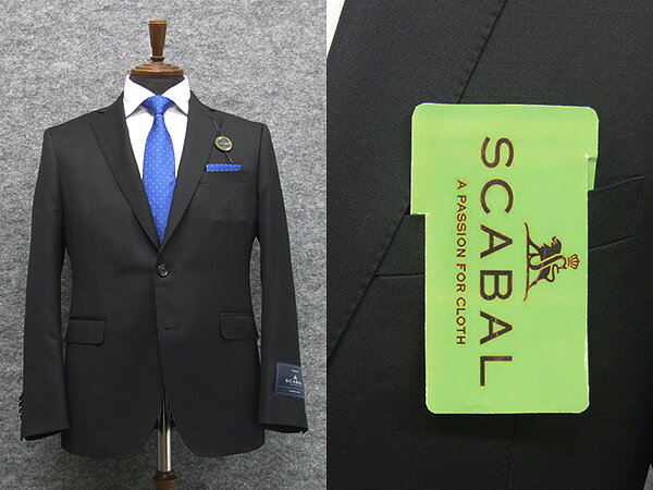 【SCABAL スキャバル】【秋冬春】黒無地 ベーシックタイプ【BB体】【日本製】2ボタンシングルスーツロゴ入り裏地【送料無料】