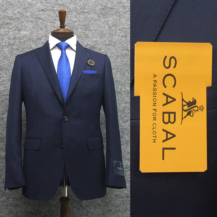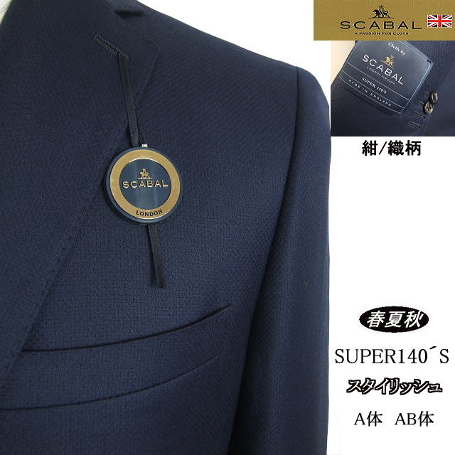 【SCABAL スキャバル】【春夏秋】スタイリッシュタイプ【AB体】super140´s【日本製】2ボタンシングルスーツ/紺織柄(無地調)ロゴ入り裏地【送料無料】