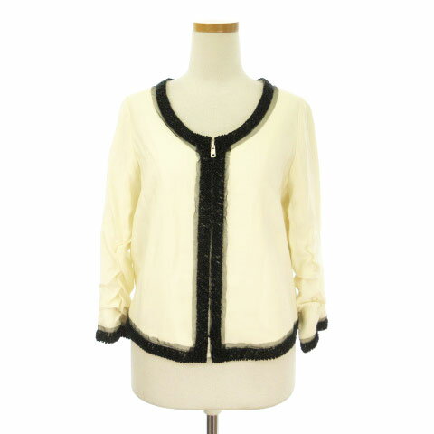 【中古】 スカーティッシュ scartissue ジャケット ノーカラー ビジュー レース 2 白 ホワイト ☆LEK☆ /tt0603 レディース 【ベクトル 古着】 190605