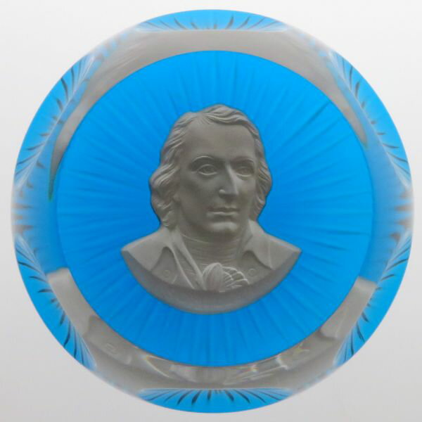 バカラ ペーパーウェイト ● 文鎮 フランクリンミント シラー クリスタル カメオ ブルー 青 Friedrich von Schiller 希少 箱付