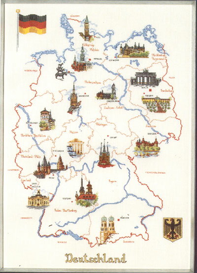 OOE クロスステッチ刺繍キット 22001 地図 Deutschland ドイツ Germany 【海外取り寄せ/納期40〜80日程度】 デンマークの刺しゅうメーカー「オーレンシュレーガー(O. Oehlenschlägers Eftf. / Oehlenschlager)」製ししゅうキット 額やタペストリーに