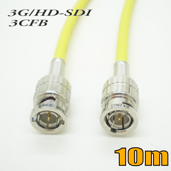 3G-SDIケーブル HD-SDIケーブル 両端BNC付き 3CFB対応 10m 黄色 単線 【在庫品】
