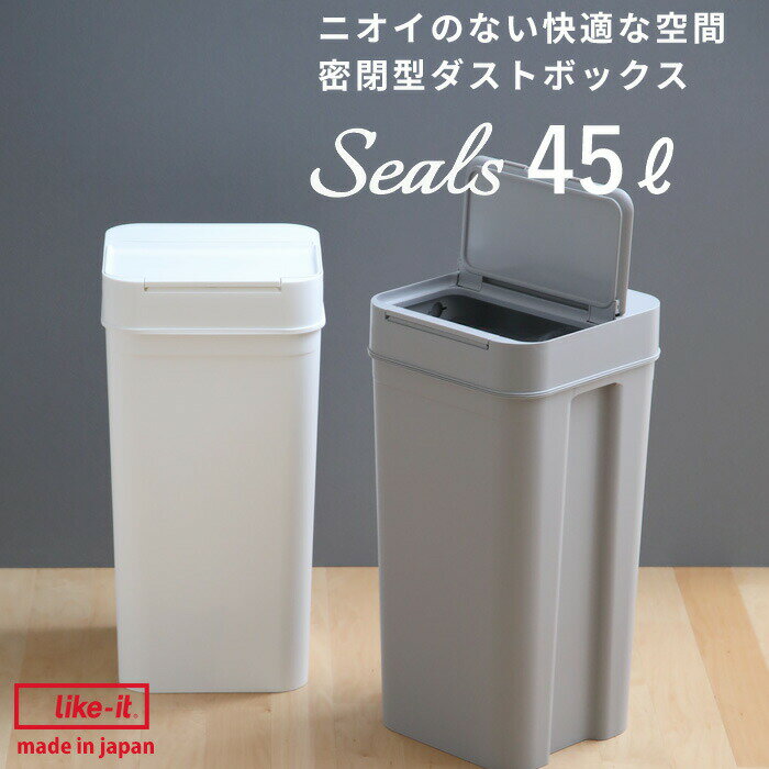 【レビュー特典】 ライクイット like-it 〔 seals シールズ 45 密閉ダストボックス 〕 ゴミ箱 ごみ箱 ごみ ゴミ 45リットル 分別 ゴミ袋 袋 ふた付き パッキン付き 角 キッチン 臭わない 生ごみ おしゃれ いたずら 防止 シンプル 白 ホワイト グレー 日本製