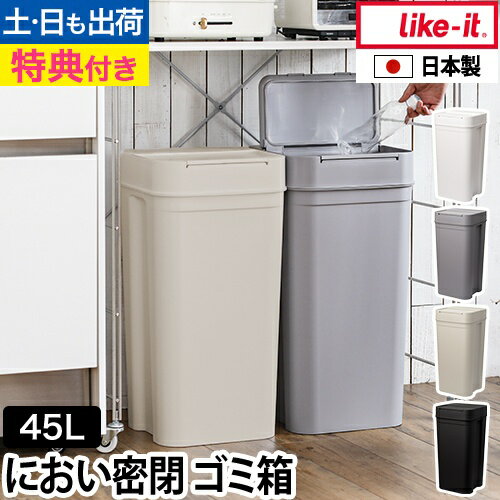 ライクイット【選べる豪華特典】蓋付きゴミ箱 シールズ45 密閉ダストボックス LBD-03 ゴミ箱 ダストボックス おしゃれ 45リットル ふた付き 臭わない 匂い漏れない 生ゴミ オムツ サニタリー トイレ ワンタッチ 縦型 見えない like-it